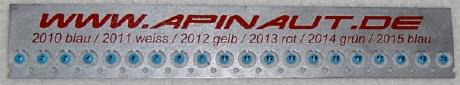 Die Plättchen selber werden nach Jahren farblich lackiert und nummeriert und bestehen aus 0,1 mm dickem (Menschenhaaresbreite), rostfreiem Stahl.